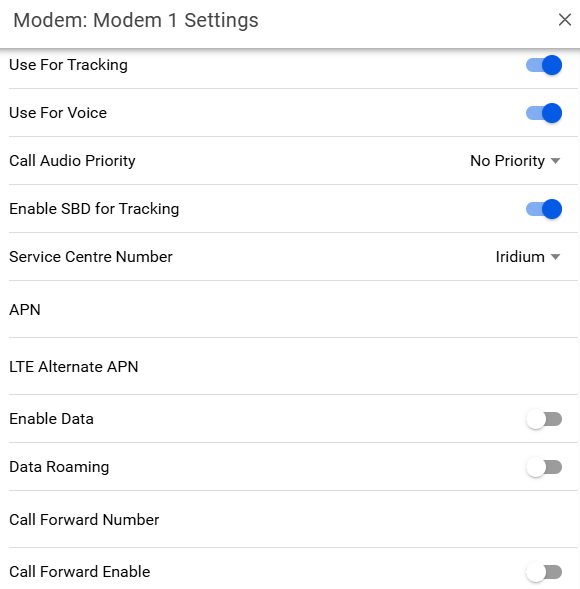 Select Settings -> Modem -> Modem 1 (this is typically your Iridium Satellite modem)