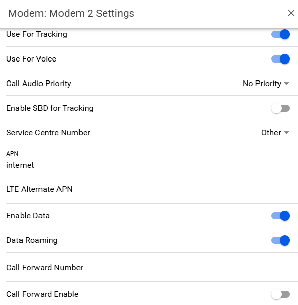- Call Forward Enable = Use this to enable/disable call forwarding. This is not related to the tracking features and functions.