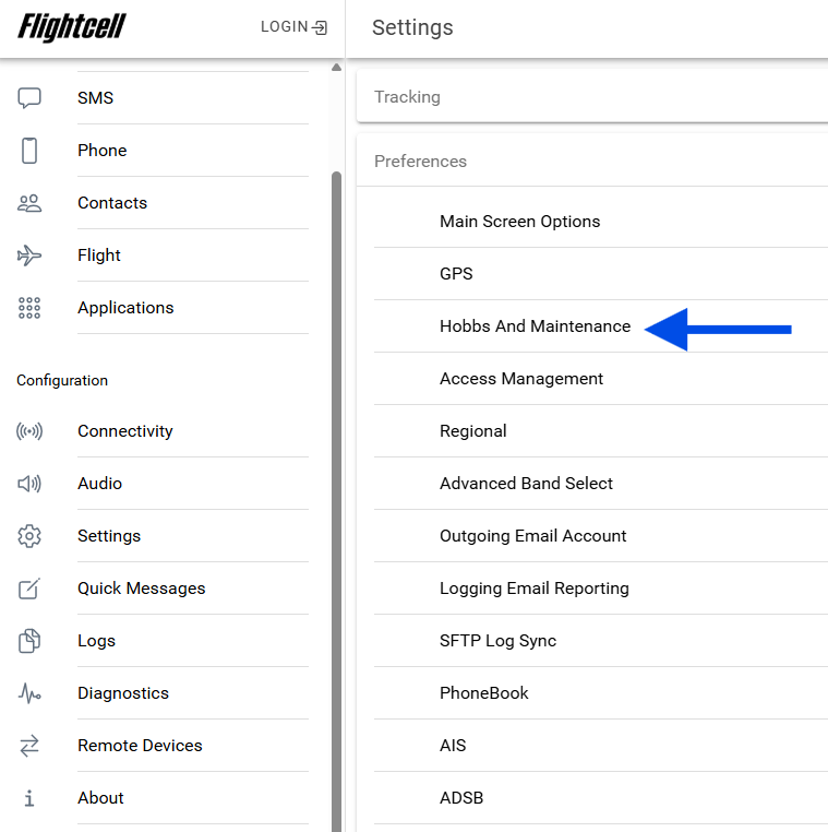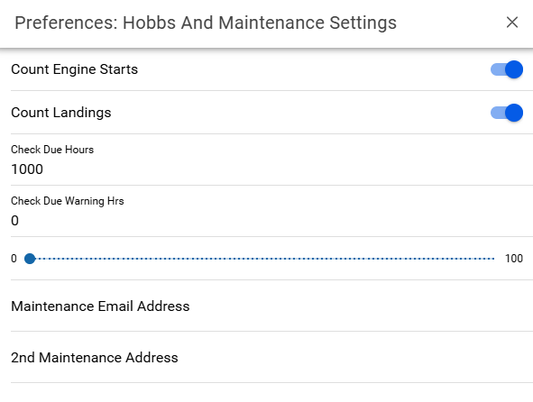 - Now access the Hobbs and Maintenance menu to add the email address for where the emails will be sent.